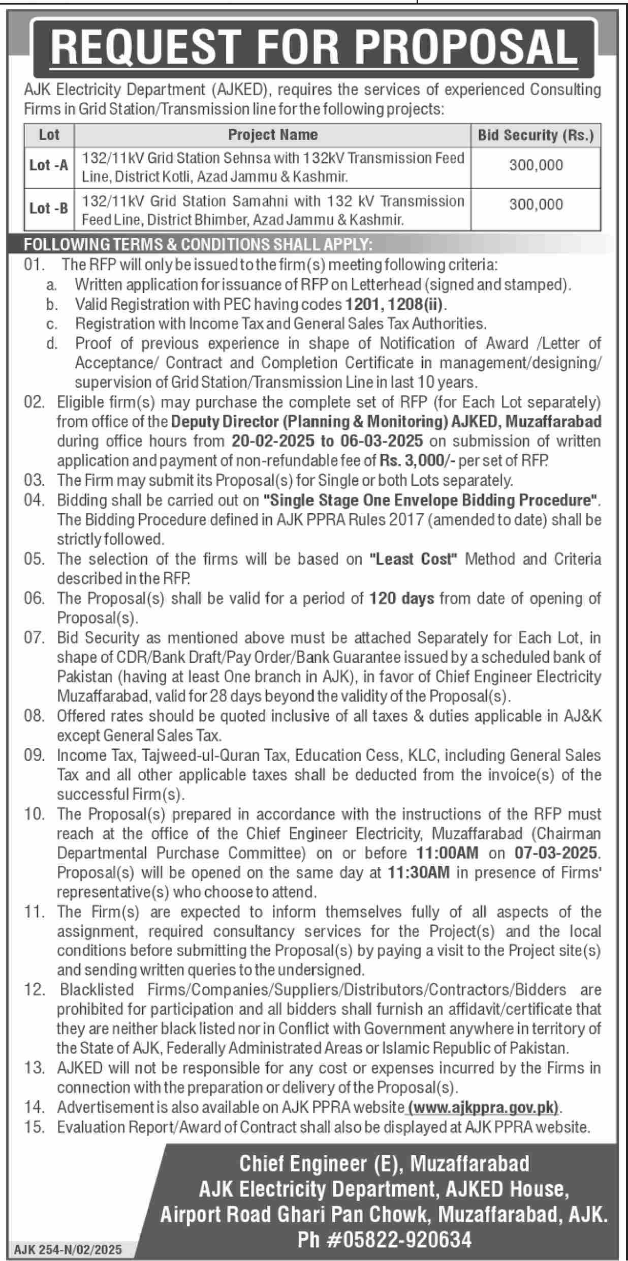 AJK Electricity Department (AJKED), requires the services of experienced Consulting