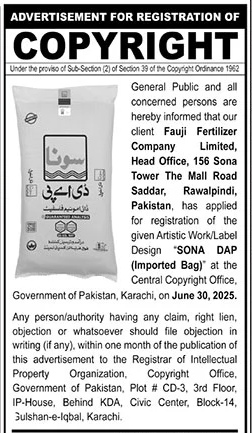 Advertisement for Copy Right of Sona DAP Fauji Fertilizer Company Ltd.