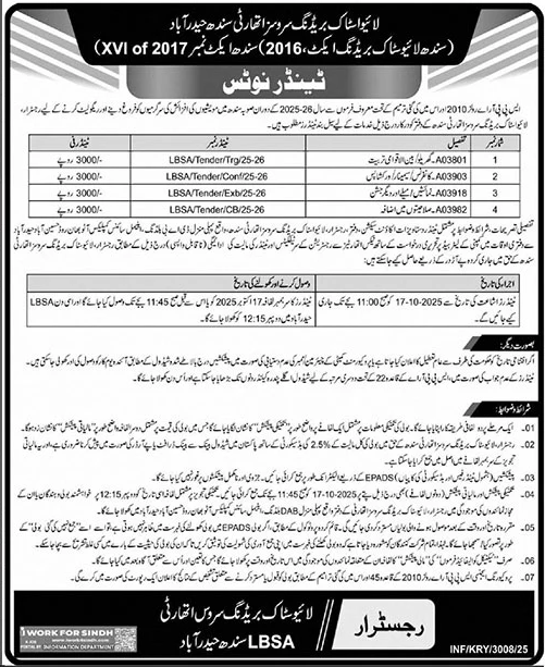 Live Stock Breeding Services Authority Sindh Hyderabad Tender Notice