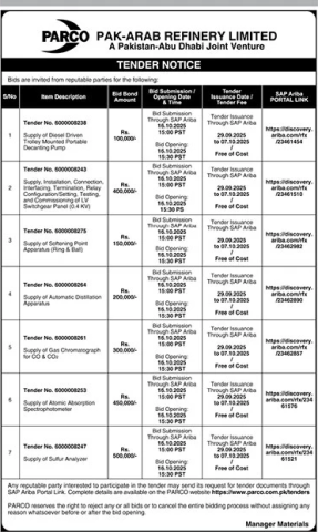 Pak-Arab Refinery Limited (PARCO) , A Pakistan Abu-Dhabi Joint Venture open a Tender for invitations. Ad Image Paper Jang Province Sindh