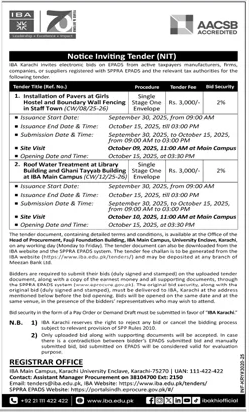 IBA AASCB Tender Opens for Notice inviting Tenders