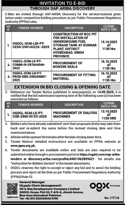 E-Bids are invited through SAP-ARIBA Discovery for the service/material given below under competitive bidding procedure as per Public Procurement Regulatory Authority (PPRA) Rules. Ad Image Paper Nawaiwaqt Province Fedral City Islamabad