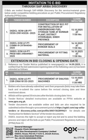 OGDCL Invitation to E-bid THROUGH SAP ARIBA DISCOVERY Tender Notice in Jang Newspaper