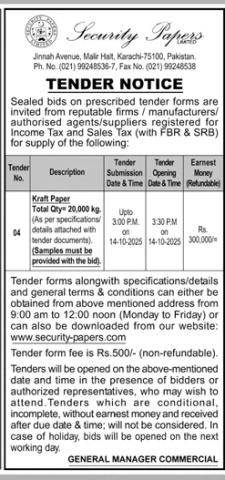 Security Papers Open a Tender noticed on Jang newspaper